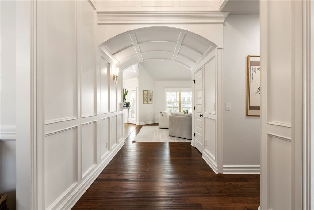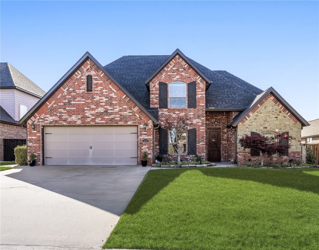 Luxury living in Bentonville's premier neighborhood! Conveniently located to all of NWA attractions, this all-brick, two-level home combines elegance w/functionality. Step inside to an inviting entryway adorned w/stylish moldings & a graceful archway opening to living area. Living rm features soaring 2-story ceilings accented by a cozy fireplace contributing to the sophisticated ambiance. The main level hosts the primary suite, a dedicated office w/custom built-in, formal dining & 1/2 bath for guests. Hidden leads staircase to a versatile bonus rm & full bath,3 bdrms w/gracious closets, including an ensuite. Highlights include no carpet in common areas, quartz counters,natural light, EIK, a three-car tandem garage w/utility sink, irrigation system, central vac & tons of storage. Outside covered patio is crowned by a high, wooden-planked ceiling w/a modern 6-blade fan, pull down shades, tv hook ups & built in grill area. Patio opens up to flat yard lined trees! Subdivision amenities w/pool!