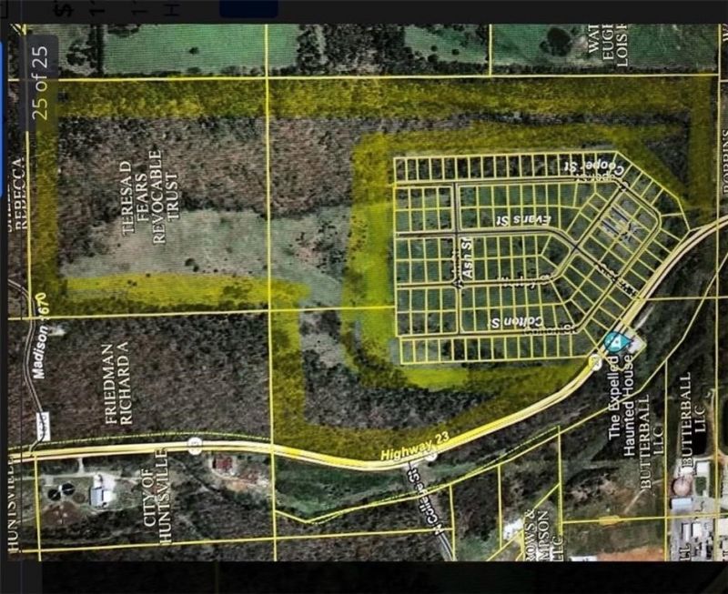 Developer's dream property! Huntsville wants this subdivision finished. The city has already agreed to pave the road on the north side after annexation. The majority of the property is already within city limits and has all utilities adjacent to the south side, which borders the Cedar Bluff Subdivision. The city has agreed to be flexible on variances and setbacks. Access to the property is available from all three (3) streets within the Cedar Bluff Subdivision. An additional access point is required off Highway 23, across from College Street and Butterball. ARDOT has already met with the current owner regarding this Highway 23 access point. Water, sewer, and city support are in place. What more could you want?