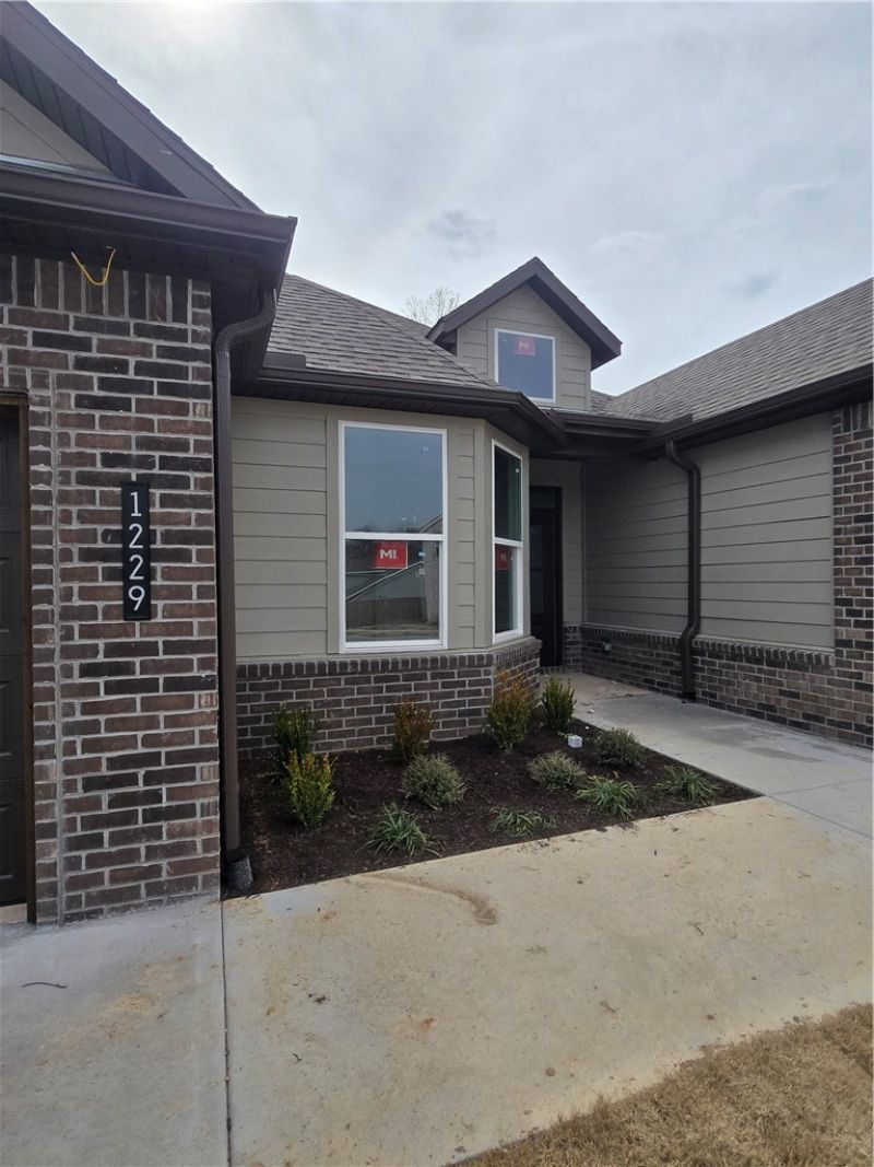 New construction single-level home located in a fantastic neighborhood near the golf course. This spacious property features a well-designed floor plan with four bedrooms, a large bonus room, two bathrooms, and a three-car garage. Interior highlights include custom cabinetry, a vented hood, a pot filler, and quartz countertops, along with luxury vinyl plank (LVP), tile, and carpet flooring. Additional features include LED lighting throughout and Frigidaire Gallery stainless steel appliances. Conveniently located near all that Northwest Arkansas has to offer, this home provides high-quality construction, thoughtful design, and an unbeatable location. The home is equipped with Frigidaire Gallery stainless steel appliances and full aluminum guttering, providing both style and long-lasting durability. Conveniently located close to all that Northwest Arkansas has to offer, this home combines quality construction with an unbeatable location.