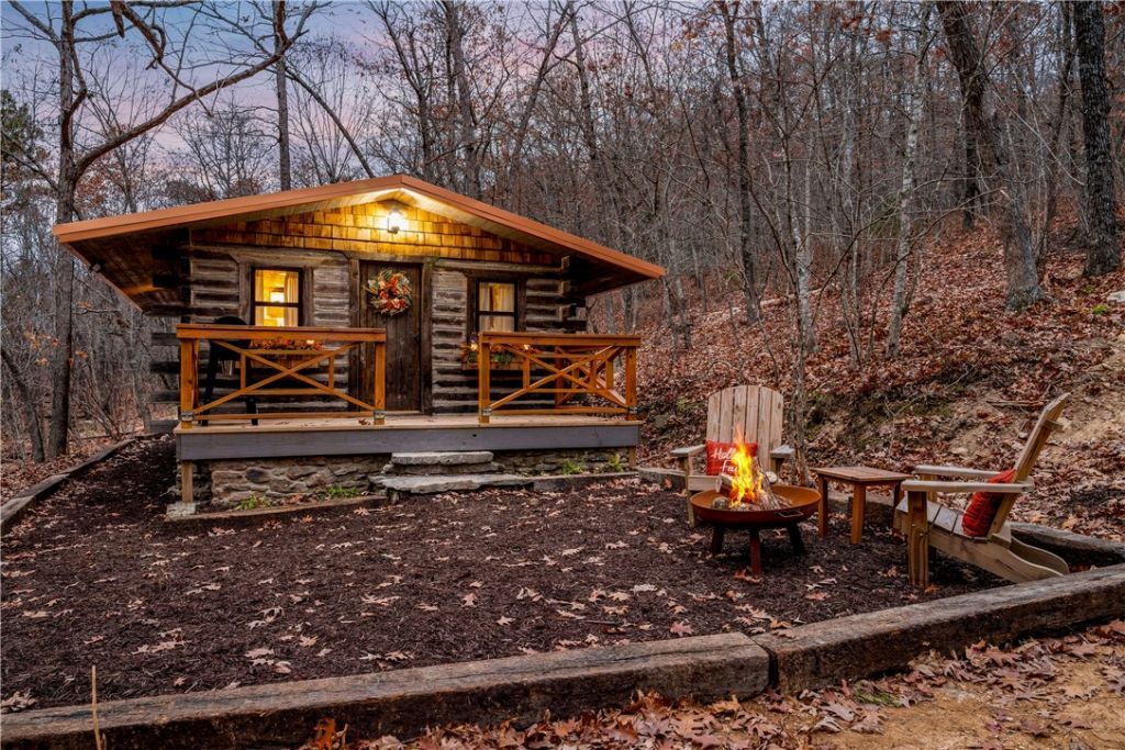 This vintage English-style cottage offers charm, comfort, and privacy in a peaceful natural setting. Situated on 5.15 acres with a seasonal creek, and tucked into a quiet forest hollow near Jasper, the property provides a balance of seclusion and convenience.Inside, the open living, kitchen, and dining area is centered around a stone fireplace, with curated antique details and warm finishes throughout. The fully equipped kitchen supports everyday living, while the bedroom includes an adjoining bath designed for comfort and functionality.Outdoor features include a covered porch, fire pit, and a boulder hot tub overlooking the creek. The surrounding wooded acreage offers a serene environment with natural sounds and privacy.Located just minutes from the Arkansas Grand Canyon and Cliff House Inn & Restaurant, this property combines natural beauty with convenient access to area amenities.