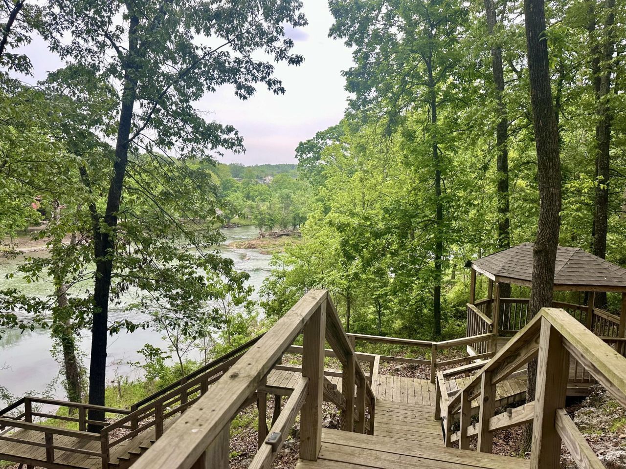 Indulge in the River Lifestyle! This beautiful waterfront home on Spring River offers stunning water views and a peaceful atmosphere. With 2,828 +/- sq ft of living space, the residence features four bedrooms, three full bathrooms, and a fully finished walk-out basement. The interior design showcases beautiful windows and doors that provide unobstructed views of the water. The open living, dining, and kitchen area is perfect for entertaining. The gorgeous stone fireplace (propane) and vaulted ceilings add warmth and character to the space. The exterior features three main relaxation areas: a deck off the main floor, a patio off the walk-out basement, a stair walkway leading to a new relaxing deck over the water and a gazebo located between the home and river with stunning water views! This property is furnished and move-in ready.