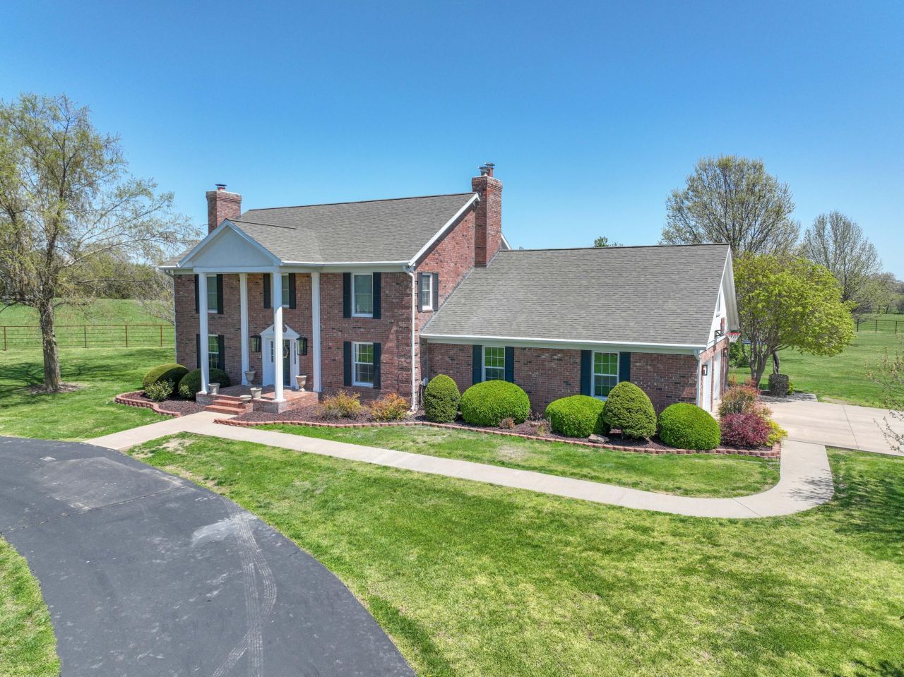 Offered again and available for maybe your last chance! Step into Classic Country Elegance with this magnificent estate, perfectly positioned on 9 m/l acres of meticulously manicured and level land. Beyond its gated entrance lies a private sanctuary, complete with partial fencing, multiple ponds, and a captivating landscape that exudes peace and beauty. The country home of your dreams awaits, adorned with custom finishes and abundant space, all while maintaining a warm and inviting atmosphere. The thoughtfully designed true 2-story farmhouse floor plan enhances the timeless charm and class of this residence. The heart of this home lies in its well-appointed kitchen and formal dining area, offering ample room for family gatherings and entertaining friends. Step outside to the back patio, where evenings are destined for enjoyment and relaxation. Ascend to the second story to find the master suite, a regal retreat with a stunning bathroom, his and her closets, and an ensuite space for workouts or tranquility. Three additional generously sized bedrooms, each with oversized closets, and a luxurious hall bathroom complete the second level. As you enter through the grand foyer, the main floor unfolds to reveal a formal living room, a family room with a full bathroom, a formal office, and a convenient half-bathroom. The finished basement is an expansive haven for family movie nights or overflow guest space, featuring a wet bar, a full bathroom, and a staircase providing direct access to the garage. The oversized garage accommodates your vehicles, yard equipment, and recreational toys. Additional features include zoned heating and cooling for optimal comfort, a maintenance-free brick exterior, a paved driveway, and a parking area. Situated just outside of town, live out your country dream, combining luxurious living with the tranquility of a sprawling estate. Furniture package and equipment are available to maintain the integrity of this amazing property.