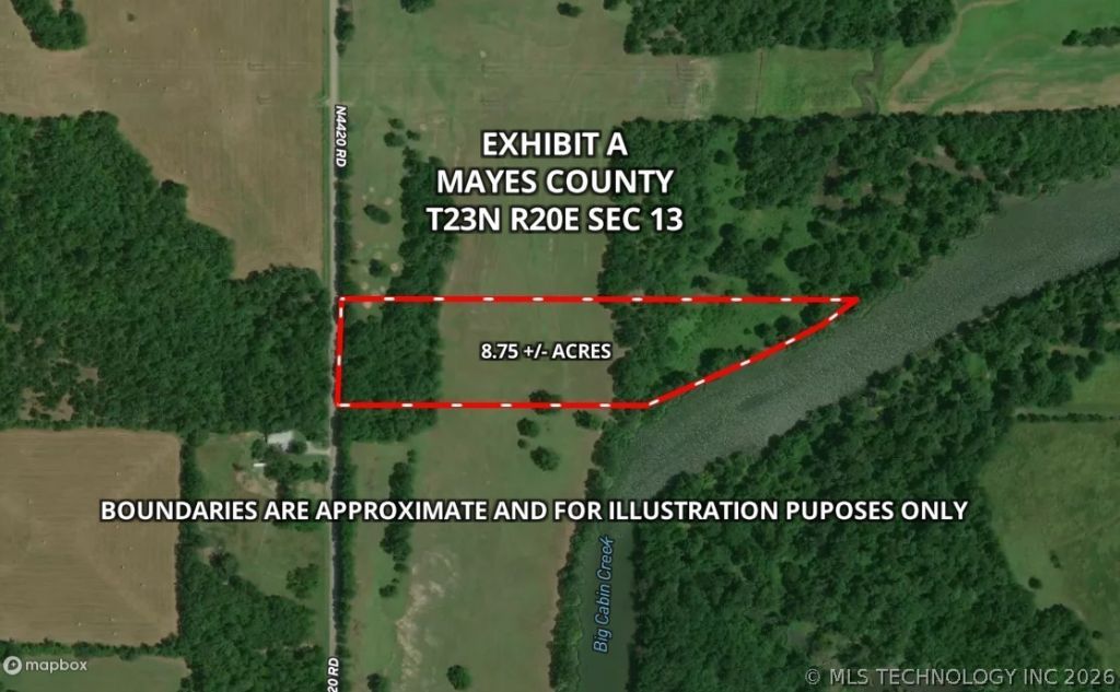 8.75+/- ACRES ALONG BIG CABIN CREEK - VINITA, OK Located just outside Vinita, this 8.75+/- acre property offers a versatile opportunity for farming, livestock, or recreation. The land runs along Big Cabin Creek, providing a scenic backdrop and potential water access. With a mix of open pasture and tree cover, it's well suited for a variety of uses. Enjoy wide open views perfect for taking in Oklahoma's beautiful sunrises and sunsets. Access is easy with paved road frontage, and the property's size and setting make it ideal for those looking to enjoy country living while staying close to the amenities of town.