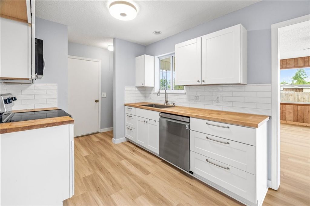 Situated near Northwest Park, the Greenway biking trail system, and just minutes to Downtown Rogers. Pride of ownership is evident throughout this home with extensive updates already done for you: all new roof (2019), HVAC system, LVP flooring and baseboards, fully refreshed kitchen with updated cabinetry, countertops, backsplash, stainless sink, kitchen faucet, dishwasher, electric range, and microwave. Additional improvements include updated exterior siding, wood privacy fence, blinds, and a fiberglass shower surround. The layout is functional and efficient with a usable one-car garage featuring attic storage. Plus an added stackable washer/dryer setup was installed inside the home for everyday convenience. There is a large storage building that conveys too?perfect for tools, bikes, or hobby space. Truly move-in ready with all the heavy lifting already done. Just unpack and start enjoying everything this home has to offer. OPEN HOUSE SATURDAY FROM 12-2PM!