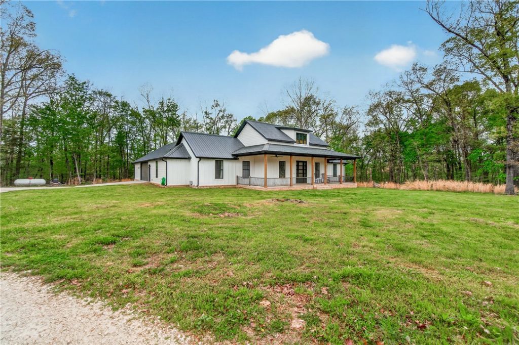 Like-new farmhouse-style home on 5 acres near Lake Wedington, where peaceful living meets everyday convenience just minutes from town.Step inside to an open, light-filled layout centered around a stunning chef's kitchen featuring double ovens, a 9-foot island, quartz countertops, commercial-grade gas cooktop, farmhouse sink, Cafe appliances, and a butler's pantry. The oversized primary suite offers a quiet retreat with a built-in window bench framed by four large windows overlooking the backyard. The en-suite bath includes dual vanities, a dedicated makeup area, and a spacious walk-in closet with built-in dressers.A standout feature is the finished bonus room off the garage, complete with a mini split, perfect for a movie room, game room, home office, or private guest space.Additional highlights include a dog wash station in the laundry room, energy-efficient foam insulation, instant hot water, two furnaces, and LVP flooring throughout and carpet in the jack-n-jill bedrooms.