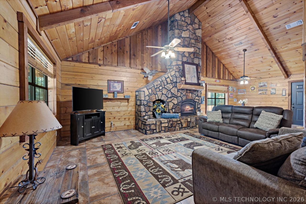 MOTIVATED SELLER! This 24-acre place offers the best of both worlds, peace and quiet in a secluded and scenic environment and outdoor enjoyment galore both here and nearby where recreational opportunities abound. Its desirable location in the Quachita Mountains is ideally located between Broken Bow Lake and Pine Creek Lake, in addition to being just 2 miles from the Glover River. These offer great fishing, boating, and other activities and are very scenic, with the Glover River ranking as 1 of the 10 most beautiful places in Oklahoma to visit. Another is Beavers Bend State Park on the shores of Broken Bow Lake and the Mountain Fork River only 16 miles from the property, so spend a day enjoying it then retreat to your own private paradise. If riding ATV's, hiking, or just enjoying nature is your thing, then you will enjoy being just a mile from access to U.S. Forest Service land. At the cabin, from the wrap-around porch and huge pavilion-like covered deck, you can cook outdoors, entertain guests, or view the pond beyond where you can fish or watch the deer and small wildlife that come there to drink. There is even an inviting hot tub to enjoy. Inside the furnished Satterwhite log cabin rustic beauty defines this place making you feel as if you have brought the outdoors in. Open-concept design is highlighted by soaring ceilings in the living area where a floor-to-ceiling stone fireplace surround serves as a lovely divider between the living and dining areas. Kitchen fully equipped with all stainless appliances including oversized gas range. Two spacious bedrooms and full bathroom with separate shower and charming clawfoot tub downstairs, in addition to loft area, bedroom and full bathroom upstairs. Phenomenal separate gameroom building and garage. Used as a successful vacation rental property but also suited for those looking to take advantage of having a second home in a stunning, private setting, where the worries of the world just melt away at Lazy J. Call to tour!