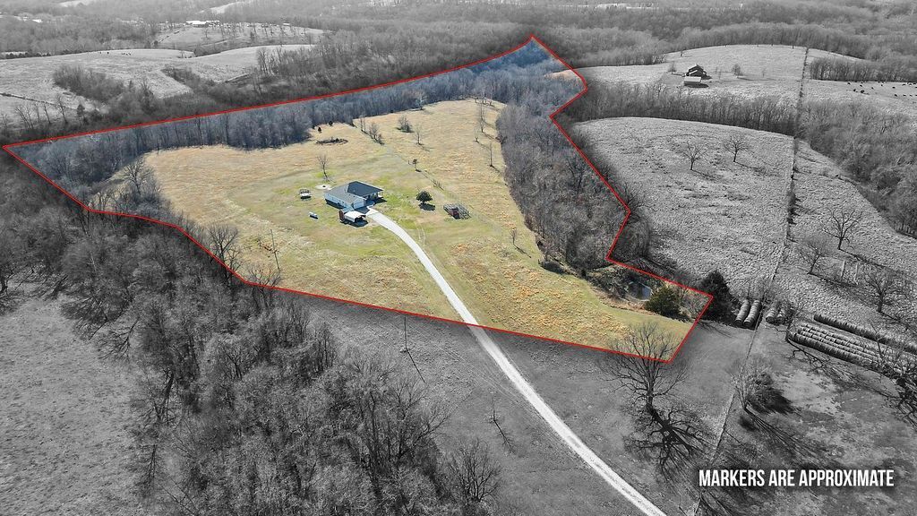 Escape to your own private 24.12-acre sanctuary in Garfield! This incredible property offers the perfect blend of secluded country living and modern efficiency, all within the Pea Ridge School District. The move-in-ready home features 3 bedrooms, 2.5 baths, an office, and a formal dining room. Recent upgrades include new hardwood flooring, updated lighting, a new HVAC system, a new roof, new epoxy front patio and updated landscaping with firepit. Efficiency is key with solar panels, a tankless water heater, and an owned propane tank. For peace of mind, the primary closet doubles as a large tornado shelter, and two ring cameras convey. The acres are mostly flat, usable land features a pond, spring-fed creek, and perimeter trees. Outbuildings include a chicken coop, shed, and carport, plus an attached 2-car garage. Starlink internet conveys! Located just 16 minutes from Pea Ridge HS and seconds from the National Park trails. Note: Polaris ATV and tractor available for separate purchase. Your homestead awaits!