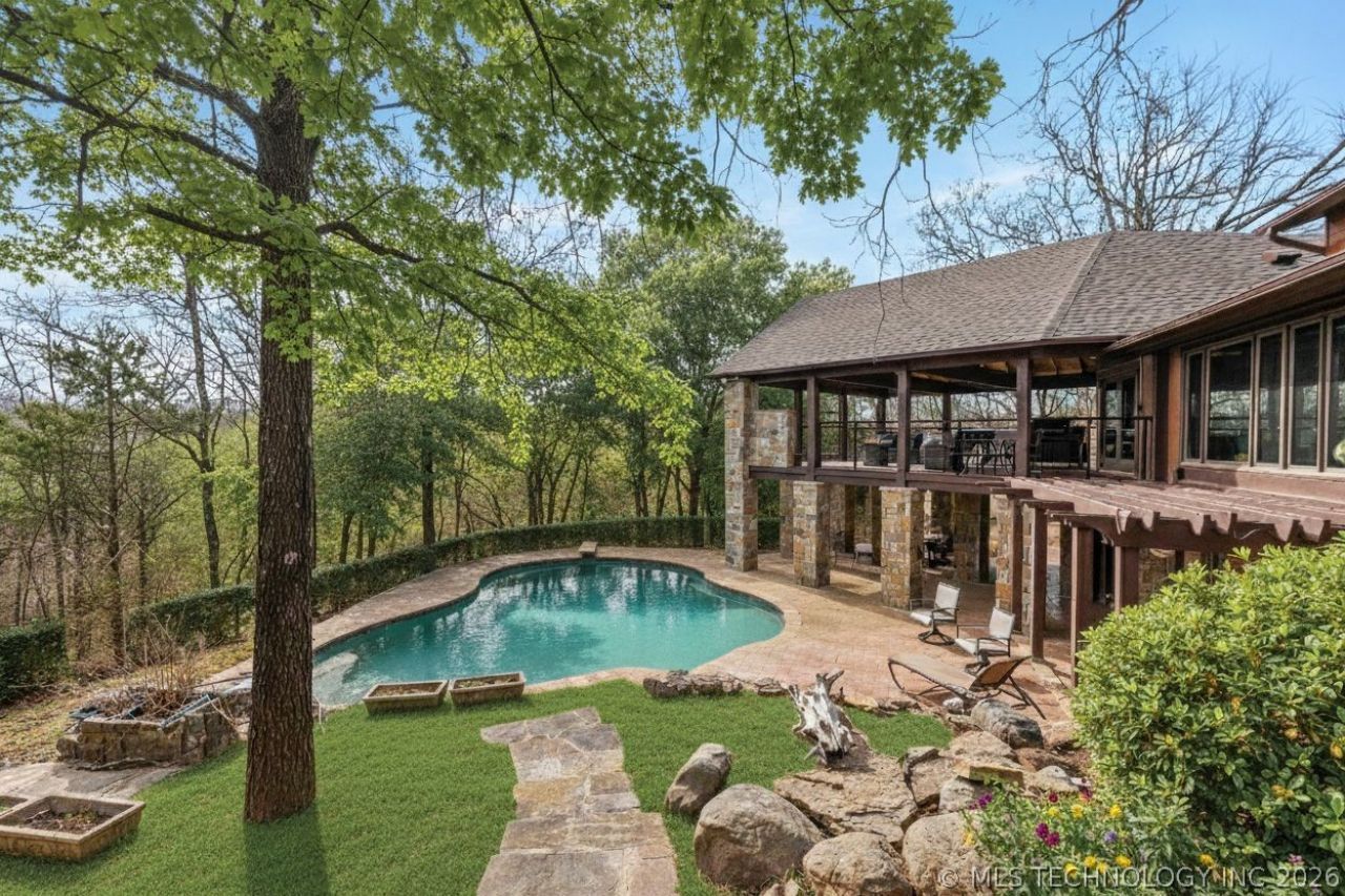 Breckenridge-inspired architecture meets Arkansas luxury in this unforgettable rock-and-cedar retreat, offering approx. per previous appraisal the home is 4,100 sq ft of interior living and 7,500+ sq ft under roof-a rare combination of statement design, smart-home convenience, resort-style outdoor living, and collector-level garage space. A sweeping circular aggregate driveway leads to a dramatic faade of stonework, warm cedar tones, and clean modern rooflines-mountain-lodge style that feels equally suited for quiet evenings and unforgettable gatherings. Inside, technology blends seamlessly with comfort: Control4 automation, Lutron smart switches, zoned whole-house audio, and voice-controlled Keego zebra shades deliver effortless 'just tell Alexa living. The chef's kitchen is a centerpiece of its own with a stainless 6+ burner Jenn-Air range, solid cherry cabinetry, and sleek black granite countertops. A stunning three-way gas fireplace anchors the kitchen and dining areas, creating an inviting flow for hosting. The primary suite is a true sanctuary-oversized with a sitting area and sun-filled nook ideal for plants or reading. The spa-inspired ensuite features a Jason Micro-silk Therapy soaking tub, walk-in shower, dual vanities, and a showpiece closet with pull-down racks, shoe turntables, and built-in shelving. Out back, the lifestyle continues: a rock-lined grotto pool, stone terraces, and a waterfall feature set a private resort tone. Entertain under the covered king-truss patio-steel framed and rock faced-with a gas fireplace and pre-plumbed outdoor kitchen capability. And for the enthusiast: garage space for 7+ vehicles, including a 50+ ft deep motor coach garage with a 14' automatic door, a 3-car pass-through garage with mudroom access, and a 2-car lower-level garage for projects and toys. Call your Realtor for a private tour and experience this one-of-a-kind property in person you will not be disappointed.