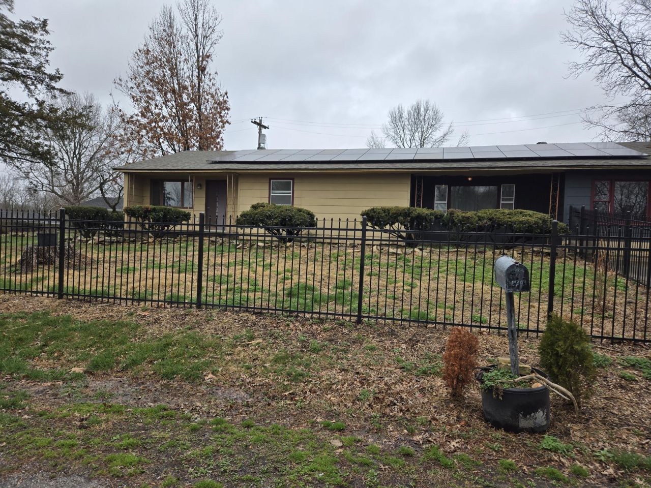 Check this out! Lots of hardwood flooring, tiled bathroom, kitchen, utility room, and family room with a fireplace, covered parking with tool room and a nice place to keep firewood dry. Property is surrounded by very nice black metal fence with a double gate. Property has a solar system on it and that does not convey from the seller. Property Sold AS IS. Offers will not be accepted from Arvest Employees or their family.
