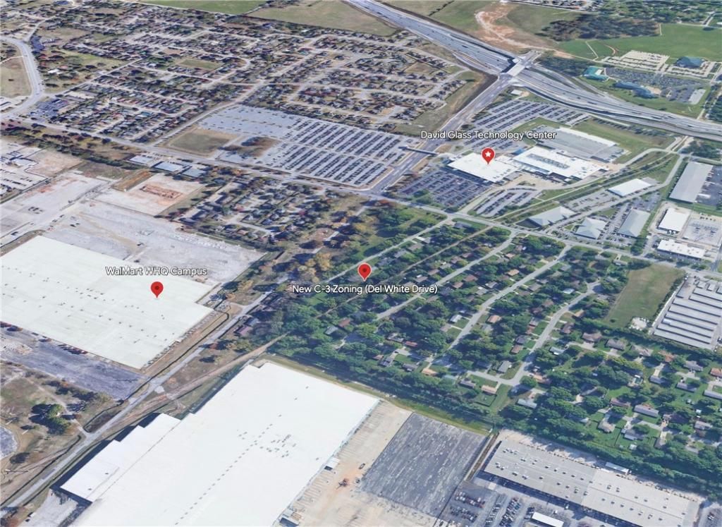 *200 yards from new Walmart Campus, Owner financing is a possible option. -Walk/Bike to David Glass Technology Center. Newly ReZoned C-3 Mixed Use (60ft height max/5 stories). This is an opportunity that will no doubt spark the creative minds of all Bentonville Developers! .31 acres with direct access the new WalMart Campus and the David Glass Technology Center. The new C-3 Mixed Use Zoning will no doubt change the entire street of Del White Drive moving forward. Currently there sits an occupied probable teardown home but with this property location and its back access to the future greenway connection to WM campus, this parcel could entertain any number of amazing commercial and residential mixed used development ideas (see example pics). Drive by the property anytime for a look!