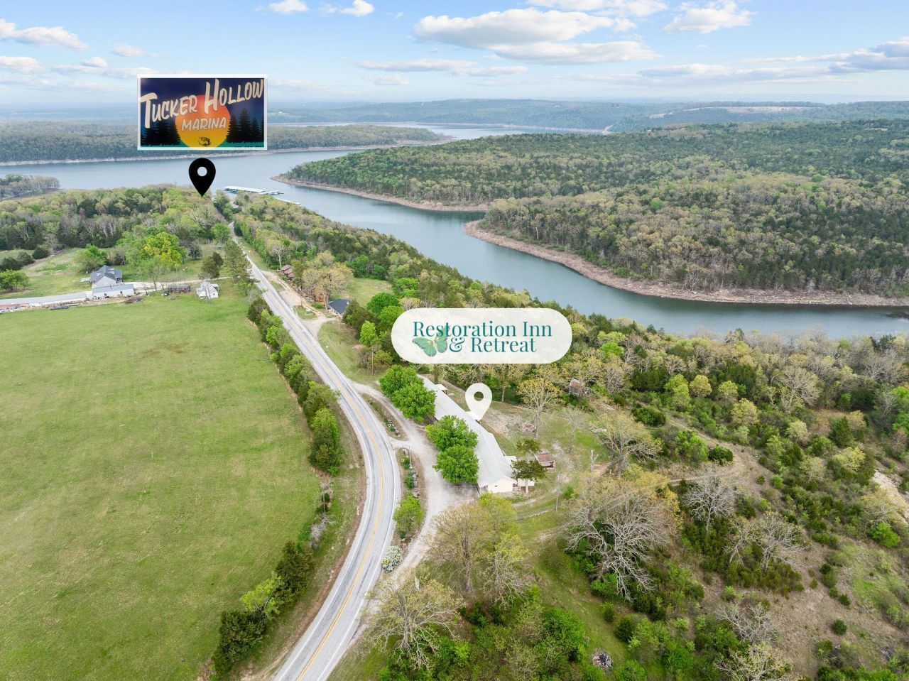 Investment opportunity next door to Tucker Hollow Marina! This rare lakeside inn features five fully furnished units tucked into the Ozark hills. Secluded from the hustle and bustle, but only a short drive to world class attractions. The best of both worlds! Three spacious 2-bedroom, 2-bath units and two cozy 1-bedroom, 1-bath retreats. All in top-notch, well maintained, super clean and tidy, rent-ready condition and fully equipped with housewares included! With peaceful surroundings, mountain views, and inviting outdoor sitting areas, it's the perfect getaway for fishermen, lake lovers, or anyone wanting to disconnect from the noise. So many options - rent them all on airbnb? Or full time rentals? Perhaps live in one unit and rent the others! Guests will appreciate the serenity and proximity to the water, while you'll appreciate the income potential in this amazing location. It's turnkey and functional. And if you're looking to expand, the house and seven cabins next door are also available ?offering even more flexibility, income, or room to grow. Rare chances like this don't come along often?act fast and secure your foothold near the lake today!