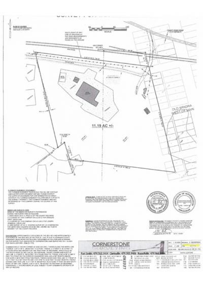 11.19 acres for staging finished products or salvaged materials for short term storage and near access to railroad transportation. Located south of Clarksville AR and adjoins The Corp of Engineer and Arkansas River on the south side of the property. Metal frameworks and concrete pads from two buildings with sizes approximately 40ft x 50ft and 150ft x 50ft. The land has a railroad spur and is close to a trucking center and a Tyson Feed Mill.