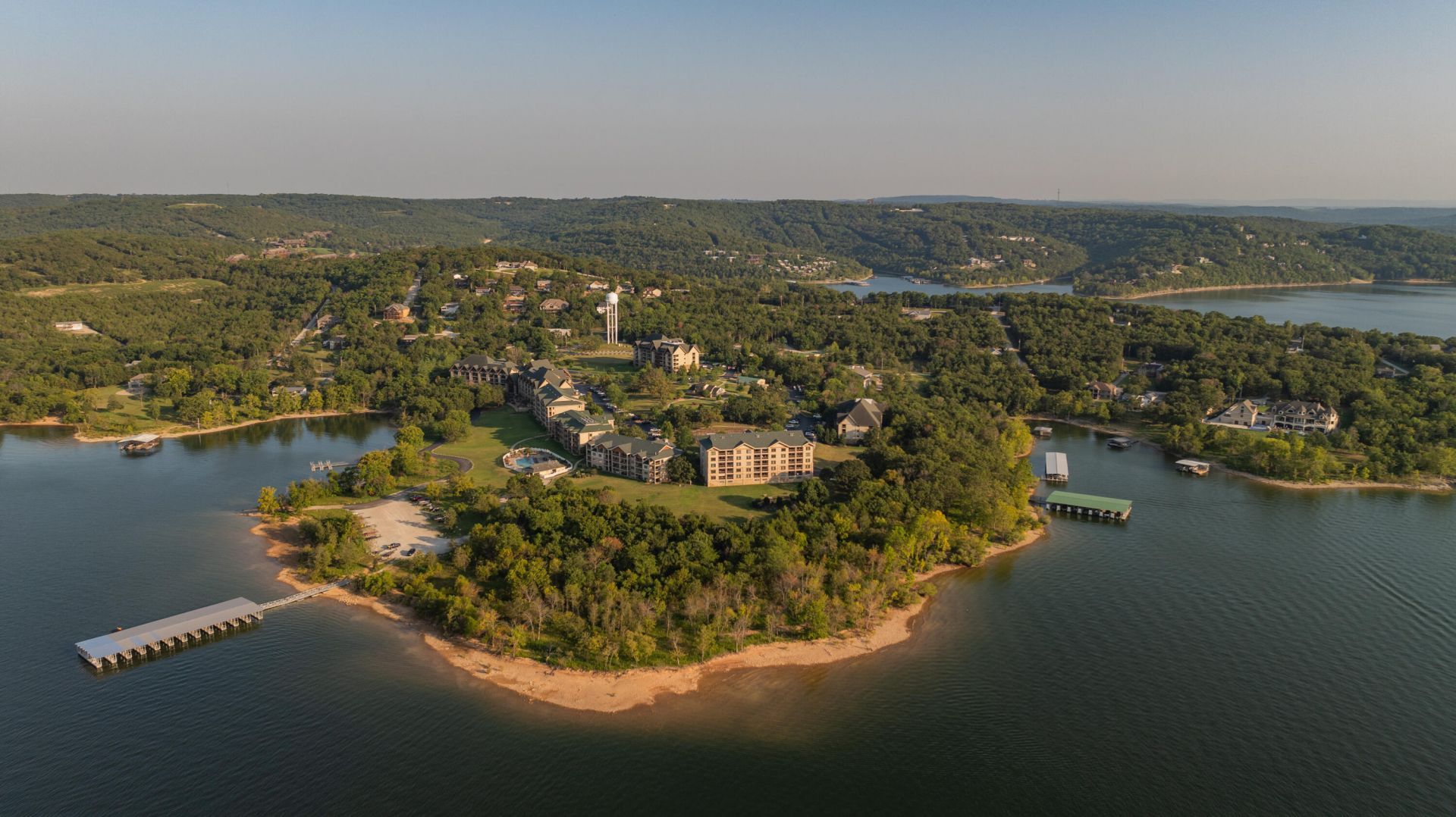 Not all condos are built equally; this Paradise Point condo features rare steel beam construction for superior infrastructure. New HVAC and water heater (2024). Extensive 2022-2024 updates include high-quality LVP flooring, Sherwin-Williams paint, custom Elfa closet systems, and updated lighting. The kitchen includes a new backsplash and updated hardware. Storage is maximized with an assigned underground garage space, overhead toy storage, and a secured shared storage room. A 30-day minimum rental policy ensures a quiet environment while maintaining strong income potential. Monthly COA covers high-speed internet, cable, water, propane, trash, building insurance, and exterior maintenance. Amenities include indoor and outdoor pools, a hot tub, a fitness center, pickleball, tennis, and basketball courts, walking trails, a children's play area, and mini-golf. Residents enjoy access to Table Rock Lake via a courtesy dock and temporary trailer/boat parking. Minutes from Big Cedar Lodge, Top of the Rock, Long Creek Marina, and Branson Landing. Unit 5204 overlooks the pond, where you often see deer and other wildlife, offering a quiet lake lifestyle.