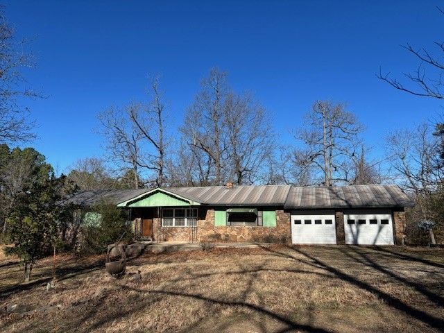 Great homesite for this late 70s 3 or 4 bedroom 2 bath home on 8 acres m/l. Large living room with wood floors and large brick flue providing architectural interest. Bonus room for office or 4th bedroom, etc. Large yard with mature trees, 2 sheds, and an animal shed with enclosure for smaller animas. Mostly level to gently rolling acreage fronts country road. Great location between Yellville and the Buffalo River.