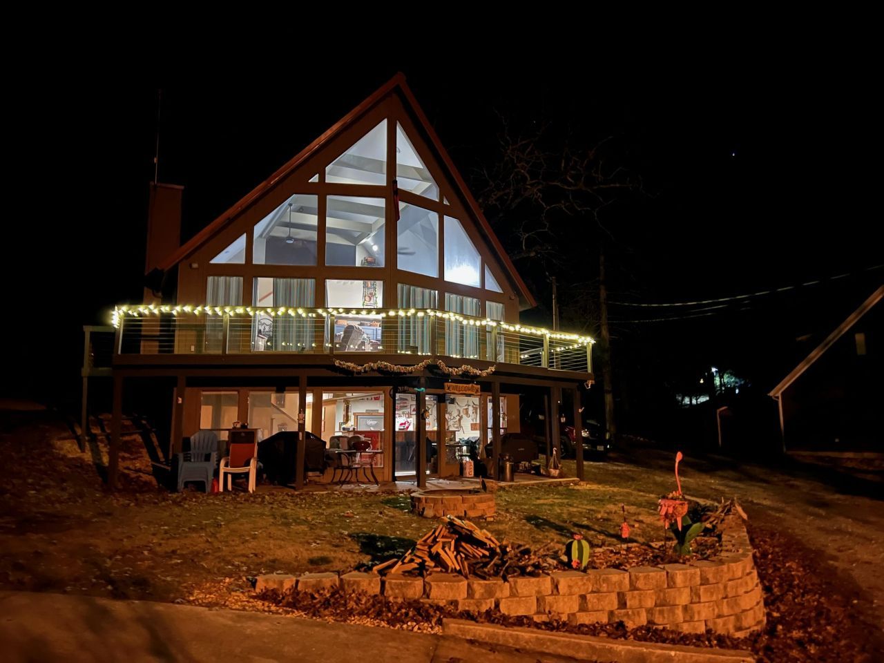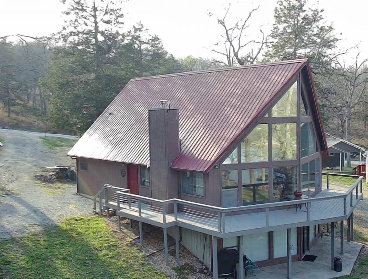 Ultimate open concept home! 25 foot vaulted ceilings with panoramic windows to view the lake. Wrap around deck. Open Stairs to the loft above the great room and kitchen (with large island) is all half walls continuing the open concept. Wood stove on main floor. Laminate flooring with some carpet. There are 5 bedrooms and 3 baths. 2 living areas -one on main floor and one in basement with a wet bar in the walk out basement. WOW! look a the shop!! 50 x 30 heated central, wood walls inside, overhead door openers. No HOA fees.