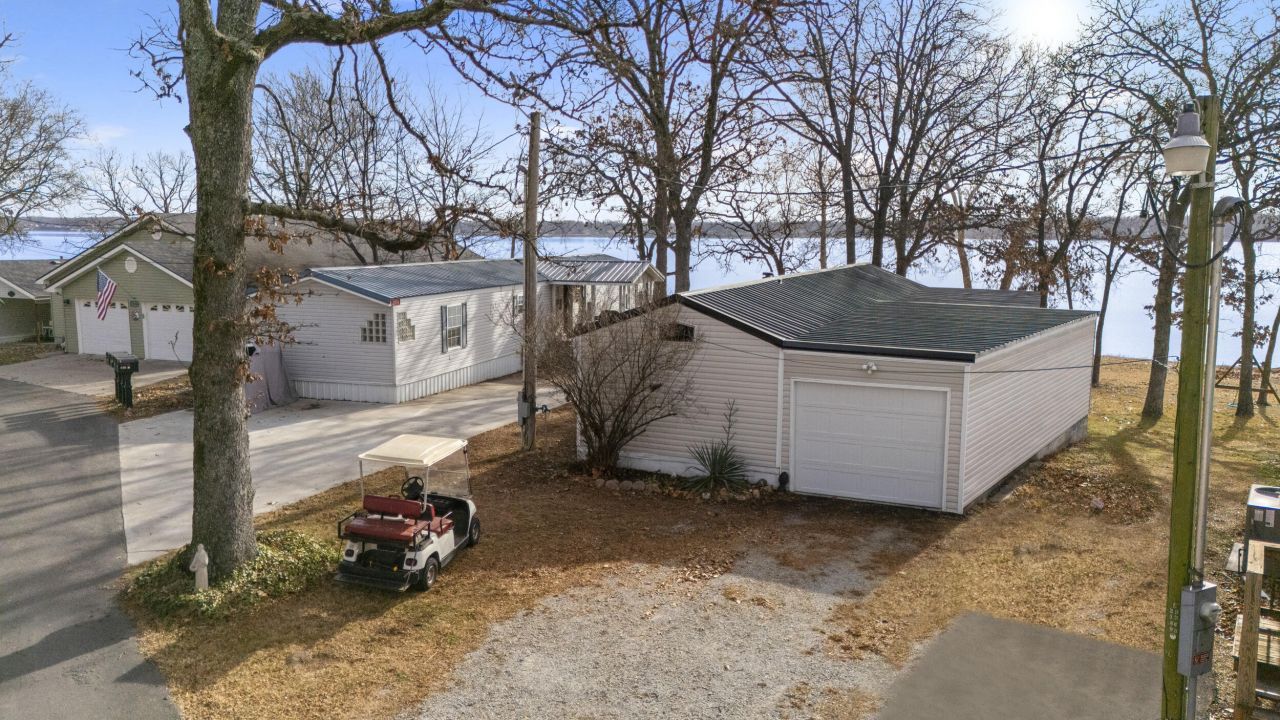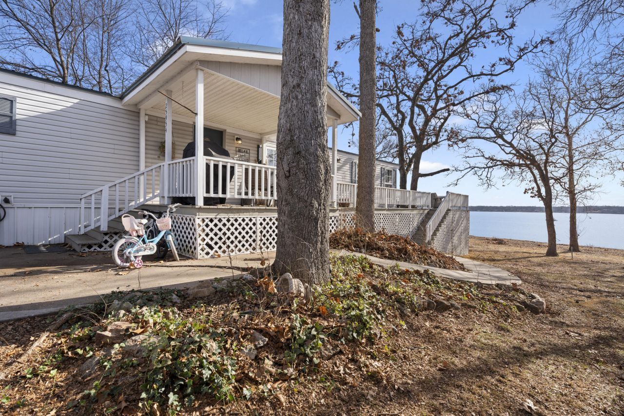 Wide open Lakefront in desirable neighborhood! This 2 bedroom, 2 bath well maintained home is move in ready. Enjoy resort style amenities including a community fishing dock, boat slips when available, clubhouse, & pool. Yard maintenance is included, allowing for low maintenance lake living. great opportunity to own waterfront property with privacy, convenience, and breathtaking views on Grand Lake. Mature trees keeps a nice breeze. Home next door is also listed for 265,000 and faces this property. Would make a nice family retreat. Family oriented community with seasonal attractions and activities year round. very close Comradery.. GRDA would have to approve private dock.