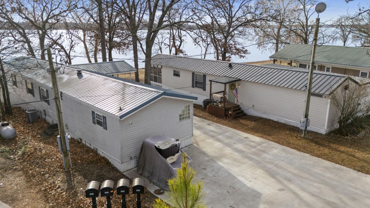 Lakefront living on Grand Lake in a desirable neighborhood! Extra long garage for BOAT. 3 bedroom, 2 bath w/ wide open lake views & an inviting covered deck overlooking the water, perfect for entertaining. New roof in 2025, Kitchen range new in 2021, AC outside 2022 inside 2023 parts only. Resort style amenities including a community fishing dock, boat slips when available, clubhouse, & pool. Yard maintenance included, Opportunity to own waterfront property w/ privacy, convenience, & breathtaking views on Grand Lake. Mature trees keeps a nice breeze. Home next door is also listed for 289,000 and faces this property. Would make a nice family retreat. Family oriented community with seasonal attractions and activities year round. very close Comradery.. GRDA would have to approve private doc