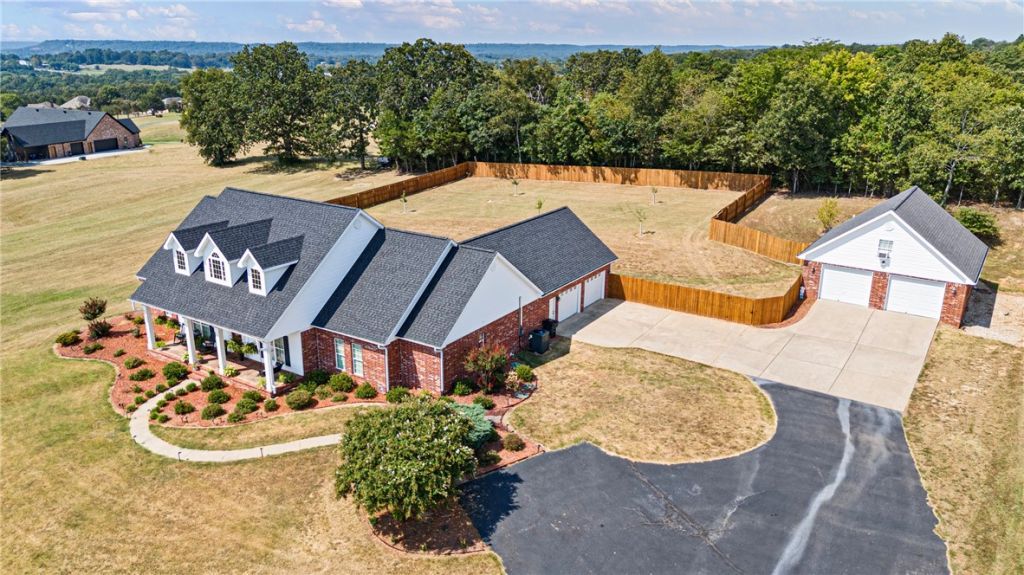 Welcome to this stunning and remarkable home in the highly sought-after Greenbrier area! Situated on 4.38 acres with beautiful, manicured landscaping and a fully fenced backyard, this property offers the perfect blend of space, comfort, and charm. The main residence boasts 3,090 sq. ft. with a spacious open-concept layout, ideal for entertaining and everyday living. An additional office/study provides endless possibilities?home office, playroom, or flex space to fit your needs. The home is complete with a secure safe room, offering comfort and protection. The oversized two-car garage includes generous attic storage for added convenience. Another true highlight is the 931 sq. ft. detached shop featuring a half bath and upstairs living quarters?perfect for a guest suite, hobby space, or a private retreat. This home has been cared for with love and is ready to welcome its next family. Don't miss the opportunity to own this beautiful dream property in Greenbrier!