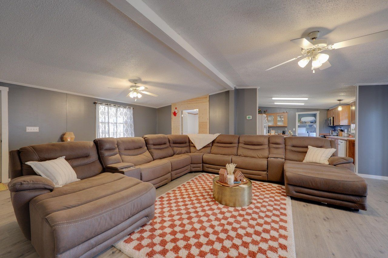 Modern Elegance Meets Acreage & Lake Access close by.Step into a world of space, style, and serenity. This beautifully reimagined residence combines a fresh, contemporary interior with the sprawling freedom of 1.5+ private acres. From the moment you step onto the massive, freshly stained front porch?complete with a cooling ceiling fan and designer lighting?you'll know you've found something special.Inside, the home breathes with an open-concept layout and an abundance of natural light. Every inch has been curated for modern living, featuring all-new flooring, a crisp neutral palette, and updated bathrooms. With four oversized bedrooms, there is ample room for family, guests, or a dedicated home office.Garage features a finished multipurpose room with 1/2 bath. owner/agent