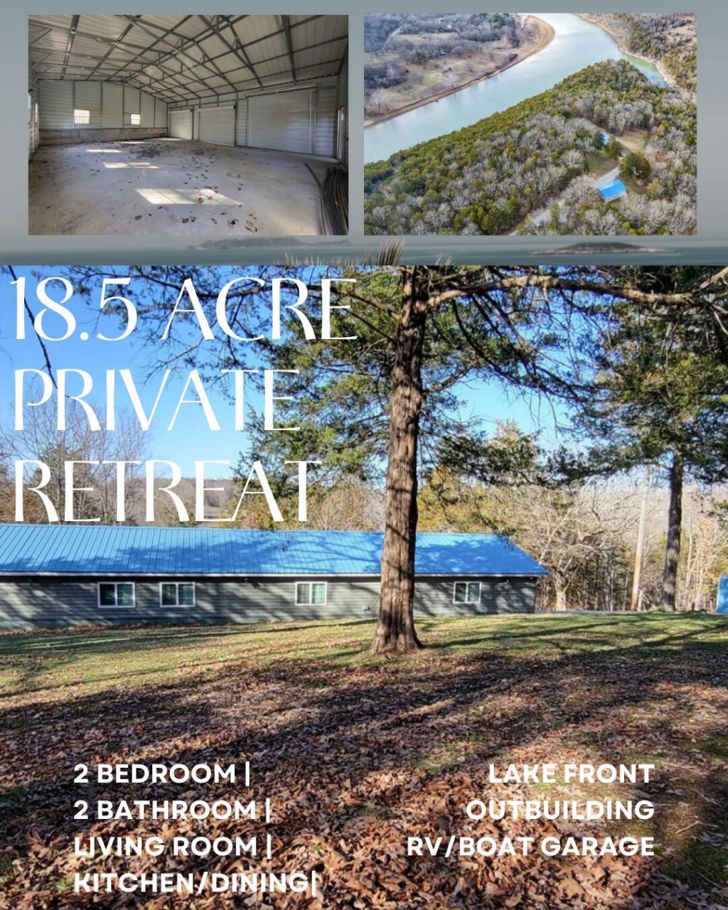 NO RESTRICTIONS!!! This is the Property you have been waiting for!!! This quiet, peaceful, Lake Front 2-bed, 2-bath home offers the kind of privacy and natural beauty that's increasingly hard to find. Set on 18.5 wooded acres, the property blends open spaces, mature trees, and winter lake views into a setting that feels like your own personal retreat.Inside, this cute and charming home provides comfortable living with an easy, simple layout--perfect for quiet mornings, weekend gatherings, or simply watching the seasons change. Cute and charming, this home is located at the end of the road and features a walk-in closet & shower in the Master Suite. Appliances include: Refrigerator, Stove, Microwave, Washer & Dryer. The metal roof, vinyl siding, and HVAC are about 6 years old. New Paint in the Living Room, Hallway/Dining, Kitchen and Master Bath. New LVP in Kitchen and a new Toilet in one of the Bathrooms. Step outside and the possibilities expand: explore wooded trails, create a garden, or simply enjoy the peace that comes with owning this much land. To add to your outdoor enjoyment, you will love the 30x40x12 Garage/Shop that was added 3 years ago and features 3 garage doors (one 12-foot door and two 8-foot doors) and is on concrete. Plenty of room to park your RV, Boat, Rec Vehicles, and Toys.Whether you envision a full-time residence, a vacation getaway, or a future homestead, the acreage gives you room to grow, dream, and design the lifestyle you want.Properties that combine generous land with lake frontage are rare, and this one offers both in a setting that feels secluded yet welcoming. As an added bonus, Seller is offering a 1-yr Home Warranty and will include Starlink equipment with an acceptable offer. Seller is Motivated, Bring all offers!