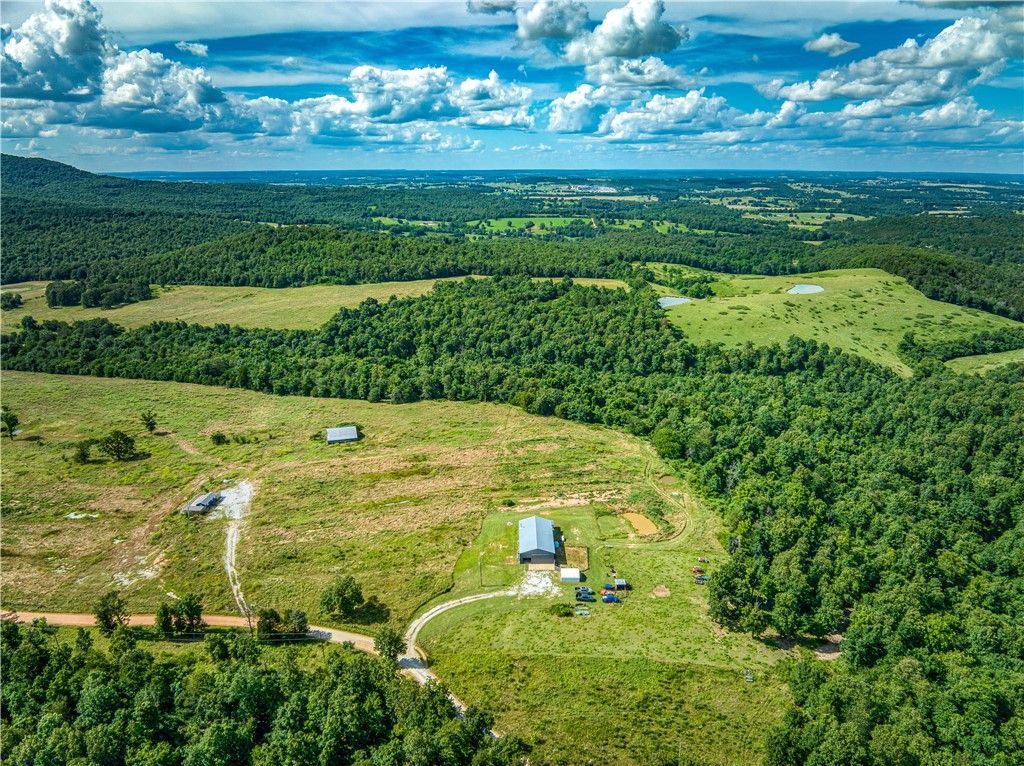 Ozarks living at it's finest! This hay barn converted into an extraordinarily unique 1 BR 2 BA barndominium checks all the boxes! Phenomenal mountain views from the massive back patio, newer pool to relax in on those hot summer days, an outdoor kitchen, very tasteful details (custom kitchen island, handcrafted heat plate with gorgeous mantle behind the wood stove, 100+ year old logs make up the stairs, custom bathrooms...) on the inside...this one is a must see. There is a good mix of woods and cleared property on the 54.33 acres and there are two small ponds. And did I mention the views????
