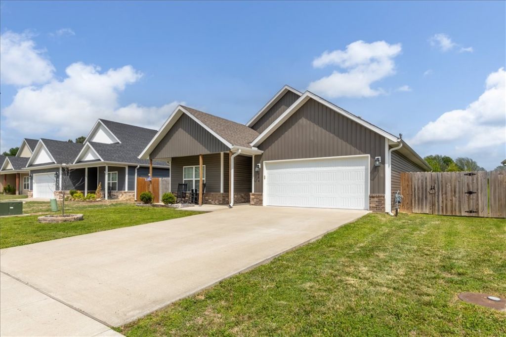 This incredible home in the heart of Gentry is close to schools, dining & everything NWA has to offer. Ranch-style with an inviting feel, featuring a welcoming covered front porch that's the perfect place to relax. Inside offers an open floor plan with 9' ceilings, 3 bedrooms & 2 bathrooms, with LVP flooring throughout. The spacious open living room features a cozy propane fireplace & flows seamlessly into the kitchen with full wood cabinets, pantry, granite countertops, stainless steel farmhouse sink & a large island built for gathering. The utility room adds function with ample space & wood lockers for organization. The primary suite is spacious & flows into a well-appointed bathroom with tile surround shower, double vanity & a large walk-in closet. Enjoy spring & summer evenings in the private backyard complete with a covered patio & 6' privacy fence.