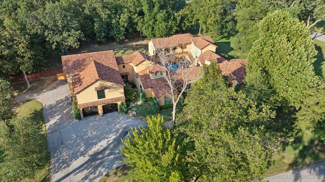 Bellissima! Situated on a sweeping 1.5Acre corner lot near World-Class Southern Hills, this Italian-Mediterranean Estate is a true architectural GEM. A rare opportunity, the architecturally significant build offers luxurious resort-style living right here at home! Inspired by a Lake Como design,the stunning courtyard is central to capturing breathtaking views from every angle, creating an ambiance of serenity while soaking in complete privacy. Finely crafted wood beams & moldings boast elevated luxury, while radius doors and windows add timeless character. This one-of-a-kind plan becons one's curiousity with an open invitation to explore! Step into the vaulted chef's kitchen that's nothing short of spectacular. Anchored by a mission-style bell tower that filters natural daylight, this culinary space features Thermador appliances, a gorgeous 48" gas range & galley-styled pantry. A cozy breakfast nook offers poolside views--perfect for both intimate meals and casual dining. The spacious primary suite is a private sanctuary with a vaulted tongue & groove wood ceiling, exposed beams, a sitting area overlooking the pool, and a spa-like bathroom. The boutique-style master closet rivals a high-end dressing room, with glass-front cabinetry and custom built-ins. Upstairs, discover a private home office with courtyard views and direct access to the covered cabana-an ideal space for outdoor entertaining, game nights or outdoor gym. Designed for a Las Vegas-style experience, the favorite room to host comes complete as the best party in town with full bar service, built in sound/media & all the Vegas Feels. Adjacent is a state-of-the-art home theater featuring spacious lounge-style seating around the massive 110" screen.The home offers three generous guest suites, wood-lined ceilings/beams & private ensuite luxury baths adorned with designer tile & fixtures. The ultra-custom EXTRA 4 car-garage is sure to be the auto-enthusiast's DREAM-store ALL your toys HERE. Your Dream Awaits!