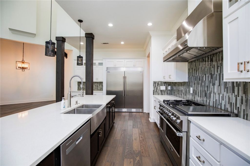 Stunning home in prestigious Pinnacle featuring a modern open floor plan and chef-designed gourmet kitchen with professional Frigidaire built-in refrigerator/freezer and DCS by Fisher & Paykel range and hood. Offering 4 bedrooms plus a bonus room (ideal 5th bedroom or flex space), this home provides exceptional versatility. The main level includes 2 bedrooms, office, dining, oversized laundry, and 2 fireplaces. The primary suite features heated tile shower floors. Hardwood flooring runs throughout the main level, staircase, and upper hall. Upstairs includes 2 bedrooms, bonus/flex room, and abundant storage. Enjoy outdoor living on the covered deck with fireplace and convenient rear gate access. Located in the Bentonville School District near Pinnacle amenities, shopping, dining, and I-49.