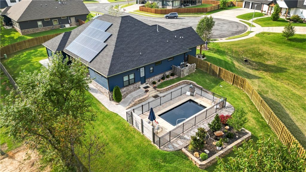 You could buy new construction, but it won't come with a private heated pool, paid-off solar panels, a tornado shelter, and a whole-home Generac natural gas generator. And that's just the beginning. This home is packed with upgrades & details that truly make it special. You need to see it in person to fully appreciate it.This 2021 build offers an open-concept filled with natural light featuring beautiful flooring and a cozy corner fireplace. The kitchen is a standout with JennAir appliances, stunning countertops, and seamless flow into the living and dining areas.All 4 bedrooms, plus a dedicated office featuring a custom pecan slab desktop, are conveniently located on one level. Step outside to your private retreat, complete with a paved walkway leading around the yard from a gated in-ground saline pool to a Blaze outdoor kitchen under a covered patio and all the way to the heated & cooled 3-car garage with epoxy floors and built-in cabinetry. Ask for the video & 3D tour, or schedule your private showing