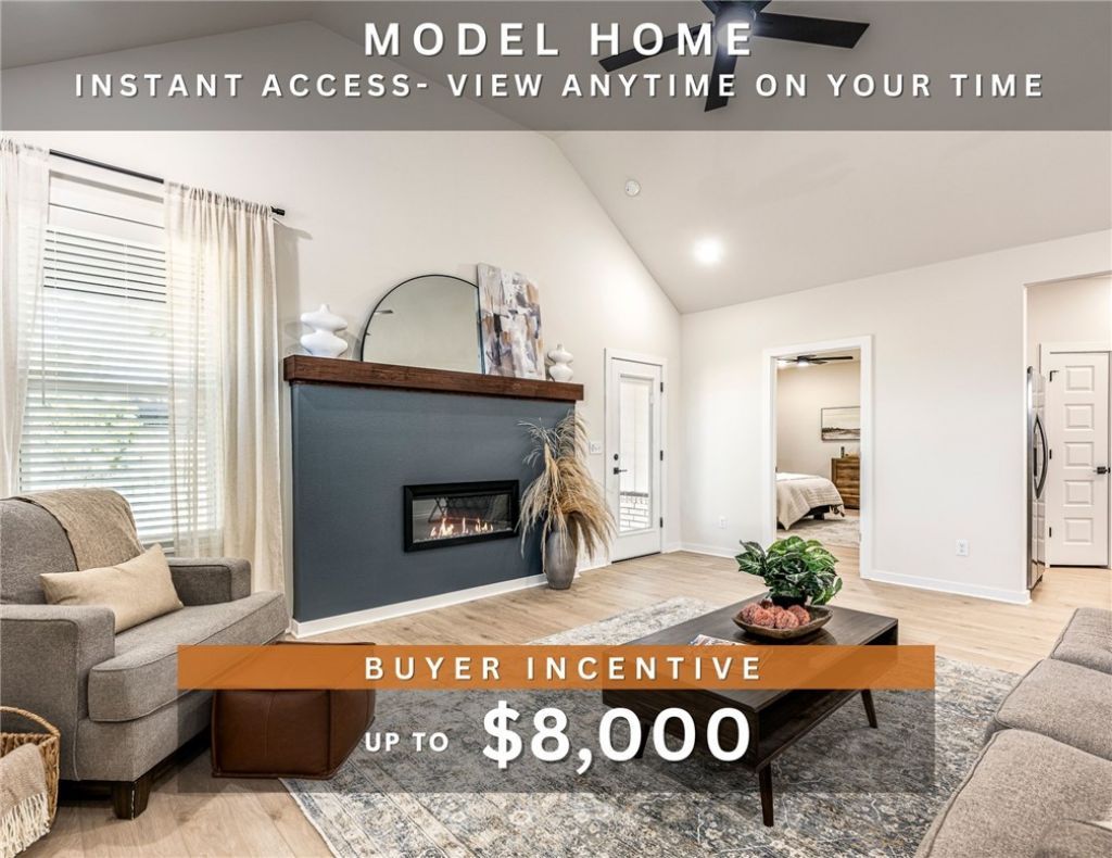 MODEL HOME that perfectly showcases the style, quality, and luxurious features you can expect in your dream home. Fence, blinds and gutters included! Discover your dream home in the new neighborhood- Jacob's Crossing. Caden plan with 1 level, garage on the right & West facing! 13 ft ceilings in the living and dining, linear electric fireplace, LVP flooring throughout the main living areas & primary bedroom, quartz countertops & more. Chef's kitchen boasting frigidaire stainless steel appliances, gas range, pantry, quartz countertops, bar pull handles, large island & gorgeous backsplash. Luxurious primary bedroom features abundant natural light, while the spa-like primary bathroom offers a walk-in shower, double sinks, tub & spacious walk-in closets. Additional features include two large secondary bedrooms & a functional laundry room. Nestled on a generous lot with covered patio that overlooks the sodded, fully fenced backyard. Sturdy concrete siding and brick!