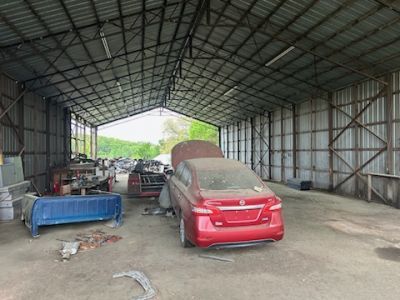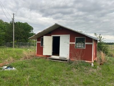 Metal building, office, 3 old mobile homes plus 20 acres. It was used as a warehouse. Metal siding and metal roof; Also there are two docks. Building is 40 x 80 on concrete slab. There is one water meter and two electric meters. Property is outside city limits.