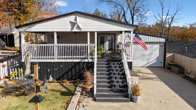 This immaculate 3 bed, 2 bath home offers stunning lake views of Raper Hollow in the highly desired South Grand Lake area. New updates, including a new roof, flooring, hot water tank, HVAC unit, and skirting, just to name a few.A 15' x 80' garage/shop provides plenty of room for all your lake toys, ATVs, and includes a dedicated workshop area. A spacious covered lakeside deck was added so you can relax and take in those beautiful Grand Lake sunsets, with additional storage conveniently located underneath.This property is turn-key and furniture is available to be included! The community park is just across the street, offering easy lake access with 2 swim docks and boat launch area. VRBO-friendly.