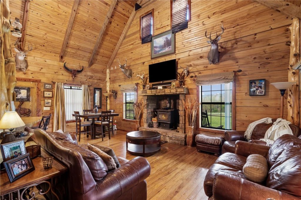 Escape to the Ozarks with this unique 18.7-acre retreat in scenic Madison County, just 30 miles from Rogers, 16 from Eureka Springs, and 12 from Huntsville. Nestled in a private, peaceful setting, it blends rustic charm, recreation, and self-sufficiency. The 960 sq ft log cabin offers 1 bedroom, 1 bathroom, and a cozy loft?ideal as a getaway or full-time home. A few steps away, 'The Bunker is a 30x50 metal building with a 30x30 garage/shop and has 1083 sq ft of living space for guests or extended stays. Beneath it, a hidden-entry underground bunker with beds and a secure vault adds a rare layer of functionality. Enjoy excellent hunting, with access to Madison County WMA's 14,500+ acres just across the road, plus nearby Kings River for fishing and floating. A versatile retreat with unmatched features.