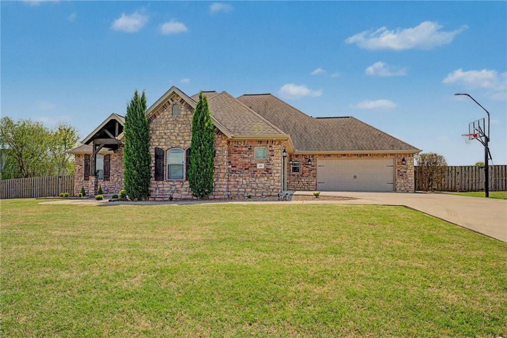 Situated at 401 Eagle Ridge DR in Farmington, Arkansas, USA, this single family residence, built in 2016, offers a truly luxurious environment within a desirable residential area. It showcases an amazing design with top tier materials throughout, maintained in great condition to provide an exceptional living experience. The culinary heart of this residence features elegant stone countertops and classic shaker cabinets, offering a refined aesthetic. A thoughtfully designed backsplash enhances the space, while a large kitchen island and a convenient kitchen peninsula provide generous surfaces for preparation and gathering. Crown molding adds an elegant finish, complemented by a custom range hood positioned above the stovetop and double oven, creating an inviting atmosphere for culinary pursuits. The living room offers an expansive atmosphere with its high ceiling and vaulted ceiling, creating an airy feel. Pool has a newer liner and outdoor bathroom. Home has instant hot water heater.