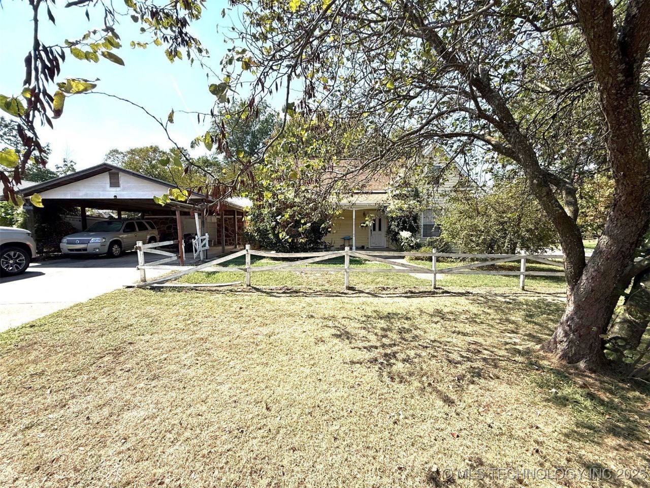 Charming Home needing a little TLC. Nice Living Area, Large Kitchen w/dining area, plenty of updated cabinets and appliances. Large Laundry room w/pantry area and 1/2 bath. Primary Bedroom and Full bath downstairs and 2 bedrooms and full bath upstairs. This home sits on 2 corner lots and the backyard is spacious. Storage, Carport, and More. Great Location, right across the road from Okemah Public Schools.