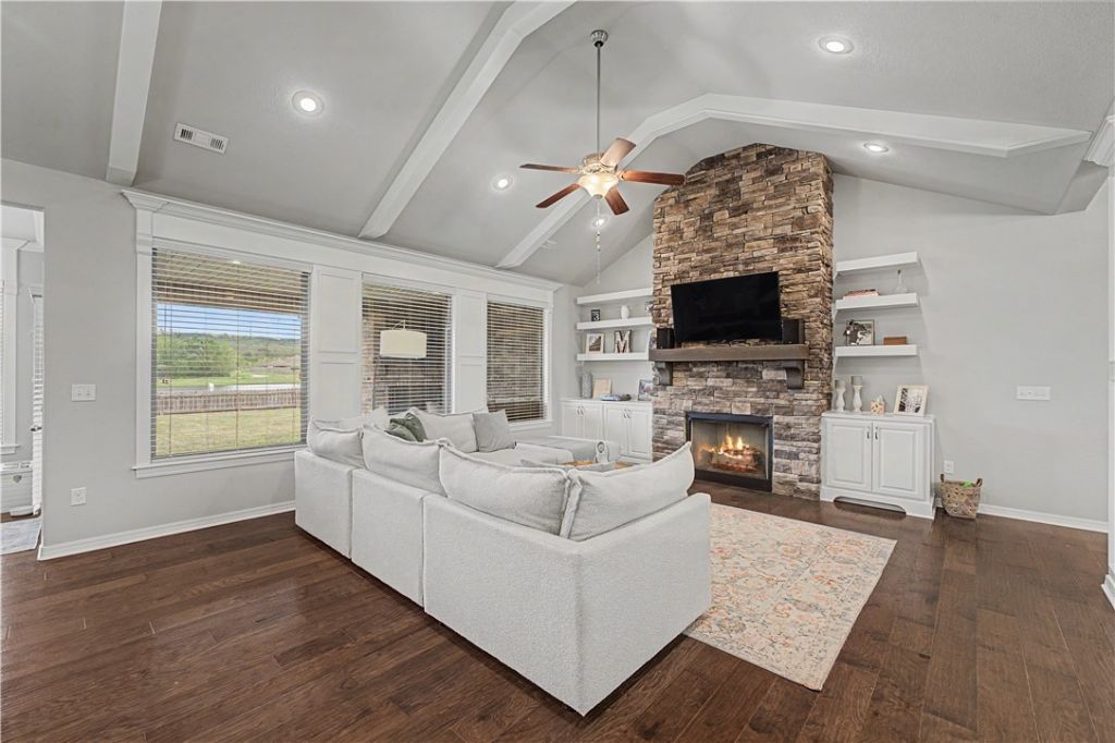 Tucked into the scenic hills of Fayetteville, this custom-built home offers stunning water views, quality craftsmanship, and thoughtful upgrades throughout. Designed for both entertaining and everyday comfort, the outdoor spaces provide a peaceful backdrop for morning coffee or evening gatherings.Inside, refined finishes and a well-planned layout create a warm, inviting atmosphere. The kitchen flows seamlessly into the dining and living areas, making hosting effortless. The private primary suite captures serene views, while additional bedrooms offer flexibility for guests, family, or a home office. A split floor plan enhances both flow and privacy. Combining custom construction, outdoor living, and picturesque surroundings, this home delivers an elevated Northwest Arkansas lifestyle. Notable features include French drains, a 5-ton HVAC upgrade, central vacuum, Shaw engineered hardwoods, custom window casings, soffit outlets for exterior lighting, and more.