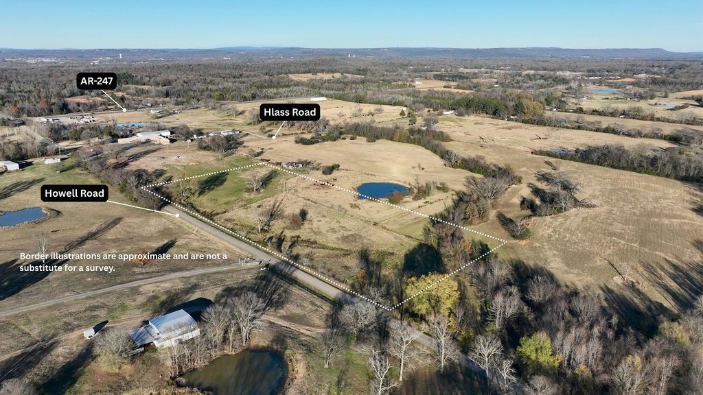 10 acres located in the South New Hope area between Russellville and Pottsville. A portion of an exiting tract with a new legal description to be determined with a new survey prior to closing. At the corner of Howell and Hlass roads proceed south about 300 feet where the 10 acre tract begins. It continues about 1000 feet south along Howell Road to an orange survey ribbon and is approx 440 feet deep to the east.