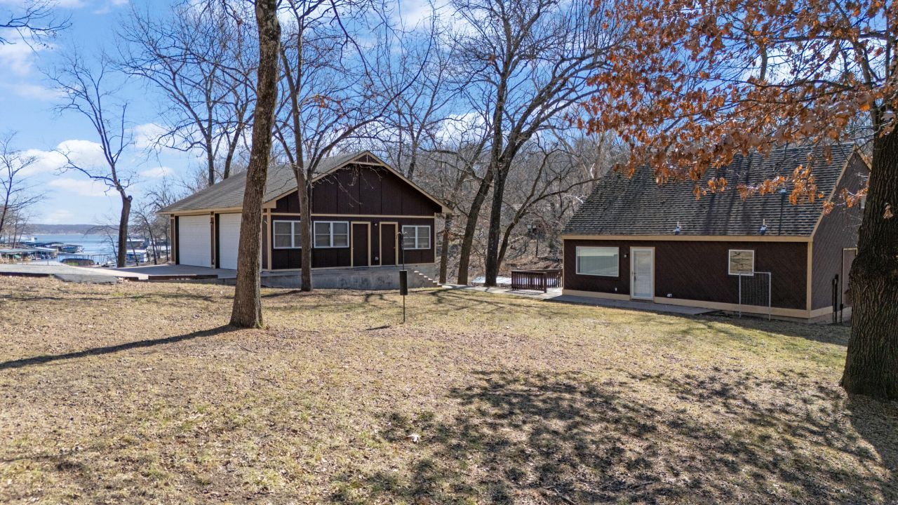 PRICE IMPROVEMENT! Lakefront Retreat with Day Dock & Guest Bunk Room. (sq ftg includes house & bunk)Enjoy this remodeled 2 bedroom home w/Bunk room and bath in garage. Host family and friends in this rustic yet updated cabin which offers comfort, convenience, and plenty of outdoor fun. Inside the main home, you'll find fresh updates including new paint, flooring, toilets, and brand-new appliances. A convenient stackable washer & dryer hookup by the kitchen for easy access. The fireplace allows for warm inviting days and nights. The detached 5 car garage includes the spacious bunk room with full bath and washer/dryer hookup--ideal for guests, teens, or extra storage flexibility. Situated on 3 large waterfront lots with paved parking area, plenty of room for vehicles, boats, & outdoor fun. Enjoy your private day dock on 191' of waterfront, complete with a PWC port for easy access. Community amenities include a swimming pool, park, pavillion, boat ramp, and pickleball court----everything you need for full time living or the perfect weekend escape. This rustic, fun cabin is ready for making memories on the water!!!