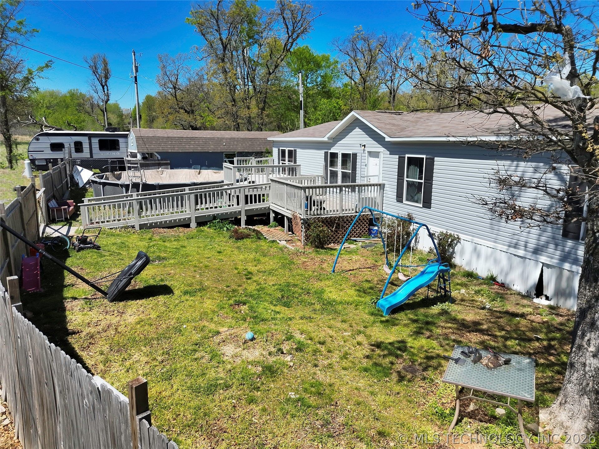 Welcome to your dream home! This newer, meticulously crafted 4-bedroom, 2-bathroom residence offers modern elegance and spacious living on a beautiful 2.01-acre lot with breathtaking views of Stilwell. With 2,016 square feet (per CH) of thoughtfully designed space, this home perfectly combines comfort, convenience, and style. Enjoy panoramic views that showcase the natural beauty of the area, and relax in your own private pool-ideal for entertaining or unwinding on sunny days. The fully equipped kitchen comes with modern appliances, making meal preparation a delight. Outside, the spacious lot gives you plenty of room for gardening, outdoor activities, or simply soaking in the peaceful surroundings. A charming tiny home with full electric amenities provides an additional living space, perfect for guests, a home office, or a private retreat. The property also includes RV hookups, a large deck for entertaining, and a privacy fence for added comfort and seclusion. This property truly has it all-space, style, and versatility-making it a one-of-a-kind find in Stilwell.