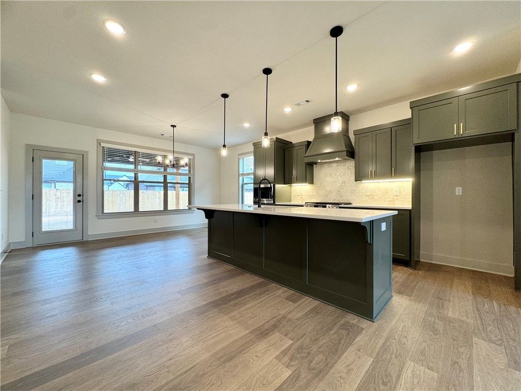 New construction home in Woodlands Crossing! This east facing 4- bedroom (2 up and 2 down), 3 full bath home features 3 cm quartz counters, upgraded tile, a designer brick fireplace, 4 disk lights in all of the bedrooms, a dresser in the primary bedroom closet, a barn door in the primary bedroom, and a craftsman feel. Other amenities include custom cabinets with soft close hinges, stainless steel appliances with a designer gas range vented to the exterior, tall ceilings, low-e windows, designer lighting, luxury vinyl plank flooring, low-e windows, 2 faux wood blinds, full privacy fence, full gutters with downspouts, irrigation system in the front and back w/ an exterior control, lots of trees and more! The community is located in the Bentonville School district and is just minutes from fine dining, entertainment, and the Bentonville Community Center. Preferred lenders are paying up to $5,000 toward closing costs, prepaids, or discount points!