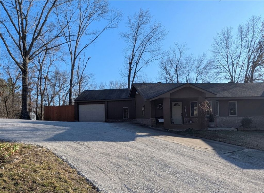 This Bella Vista retreat is an entertainer's delight. Enjoy a peaceful backyard with a wood-burning fireplace, covered gazebo, and forest views. The backyard is also relatively flat so there are many options for upgrades. Inside, the open floor plan flows beautifully with low-maintenance wood-tile floors. The home features two primary suites, each with a walk-in closet and walk-in shower, plus a built-in desk and shelving for work-from-home convenience. The kitchen overlooks the backyard and includes granite countertops, Samsung appliances, a granite composite sink, and a large walk-in pantry. The heated garage (not included in the home's square footage) adds versatility with a cedar closet for extra storage, and a third full bath, perfect after hitting the Bella Vista MTB trails. Located on sewer, the property offers plenty of options for future expansion. Additional side parking provides room to pave or even add a shop. Whether this is your dream home or MTB getaway, it's one you won't want to let slip away.