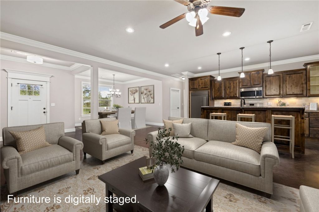 Charming 4 bed, 2 bath home just east of Fayetteville with convenient access to Hwy 16. This move-in ready property features an open floor plan with spacious living area, cozy fireplace, and abundant natural light. The kitchen offers rich wood cabinetry, stainless appliances, and a large island with bar seating, perfect for entertaining. A dedicated dining area adds functionality and style. The primary suite includes a private bath with soaking tub and separate shower. Additional bedrooms provide flexibility for family, guests, or office space. Enjoy a covered back patio overlooking a large backyard, ideal for relaxing or gatherings. Peaceful setting with easy access to town, shopping, and dining.Seller credit to buyer for $2500 towards carpet allowance with approved offer.