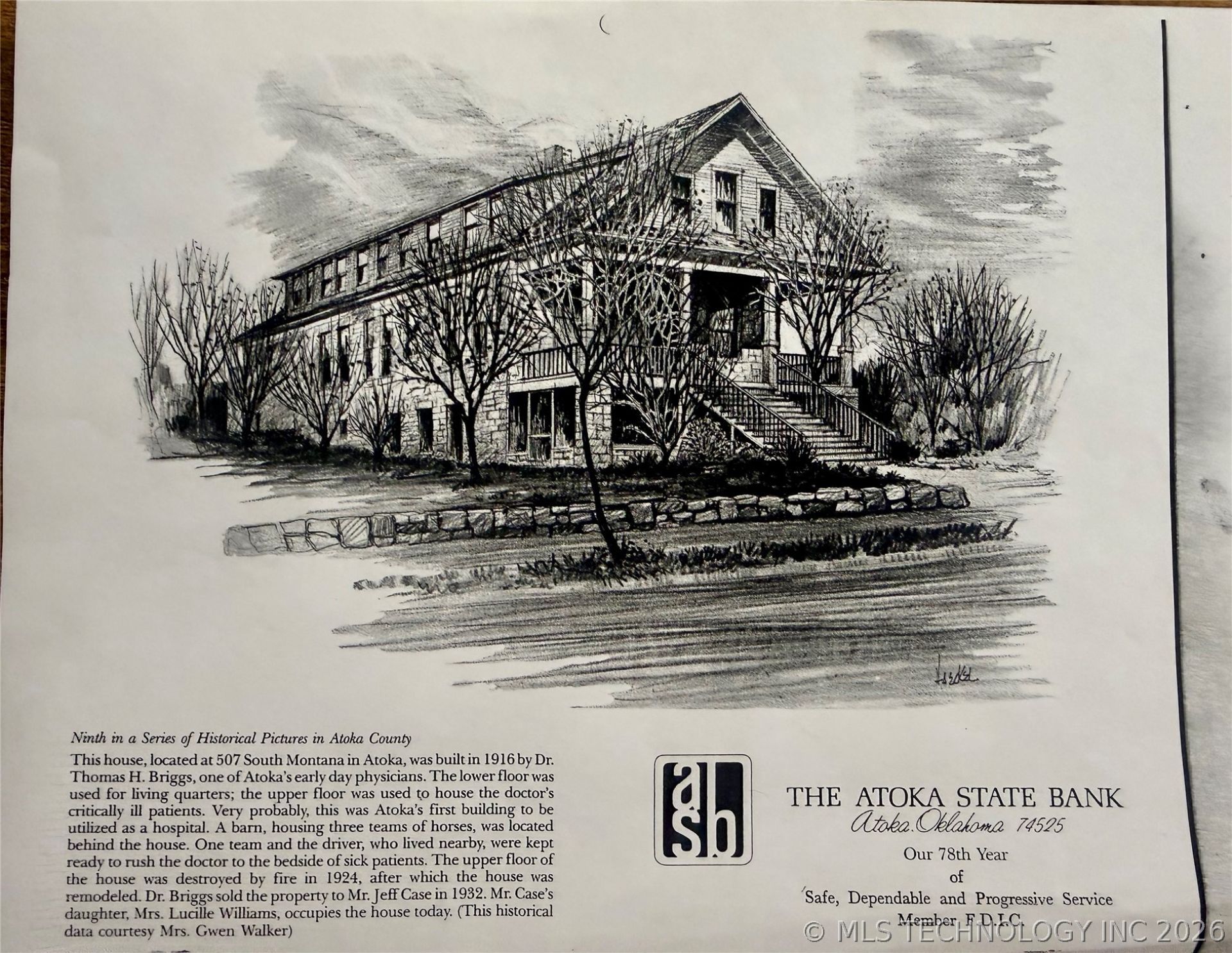Step into a piece of Atoka history with this stunning 1916 residence, known as one of the first doctors' homes in Atoka. Full of charm and timeless character, this 3-bedroom, 3-bath home blends historic beauty with thoughtful modern updates. Inside, you'll find gorgeous hardwood floors, custom cabinetry throughout, and a spacious layout designed for both everyday living and entertaining. The oversized family room features a wet bar, creating the perfect space to host and gather. The kitchen is beautifully updated with granite countertops, while major improvements-including updated wiring and plumbing and a roof just 3 years old. Situated on double lots, the property offers ample outdoor space along with an unfinished basement, offering endless potential for storage, a workshop, or future expansion. From the inviting front porch with classic columns to the rich history within its walls, this home is truly one-of-a-kind.