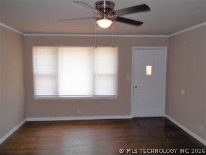 Make this cute 3-bedroom, 1 Bath, 1 Car garage your home! The home has nice hardwood floors throughout, fresh paint, and some updates to fixtures and doors. It has a large covered back patio perfect for gatherings. Easy access to highways and 10 min from Tulsa International Airport.