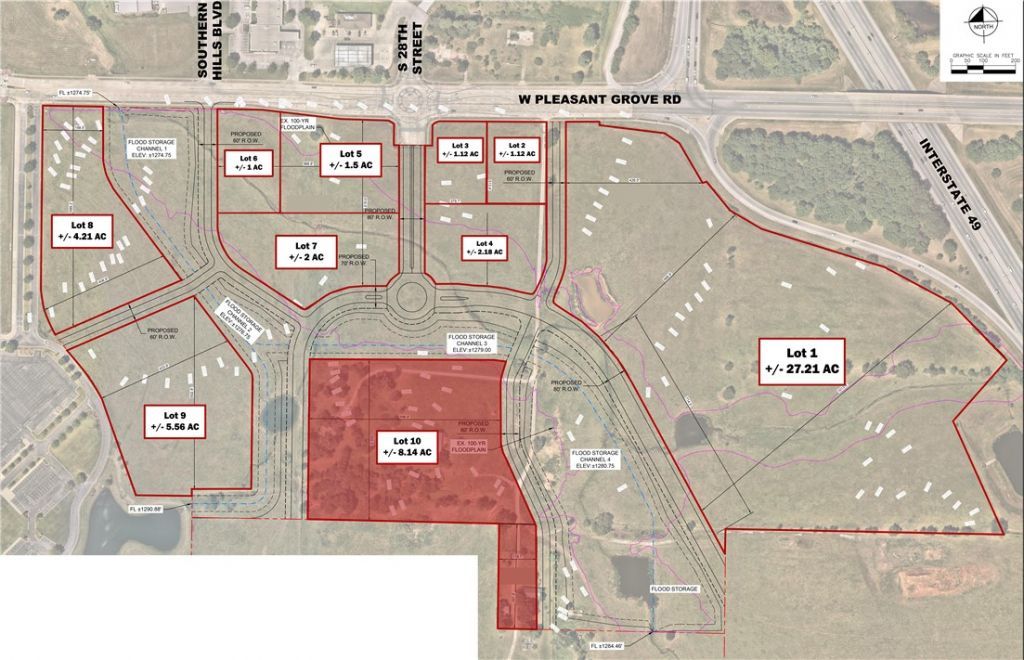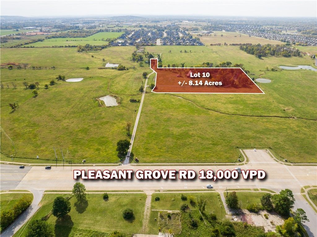 Exceptional Site Development Opportunity! +/- 8.14 acres of prime commercial land off I-49 in Rogers, AR. This flexible parcel supports commercial, multifamily, or mixed-use development. A rare chance to join one of the last remaining master-planned communities in the heart of Northwest Arkansas. Full utilities: gas at the street, 10 sewer lines, 24 water line, and electric on site. The site plan is preliminary; shape, size, and access may change to suit the end user. Surrounded by top retailers?Walmart, Starbucks, Chick-fil-A, Casey's, and a future Dick's Sporting Goods?this location is ideal for high-traffic commercial use. Traffic counts reach +/- 110K VPD on I-49 and 18K on W Pleasant Grove Rd. Just 2.5 miles from Top Golf and Walmart AMP, 10 min from Walmart's new HQ, and under 20 min to XNA. UAMS is building nearby, and Schuber Mitchell Homes plans +/- 520 housing units. Avg. household income within 1 mile is +/- $170K?fueling growth at this dynamic site.
