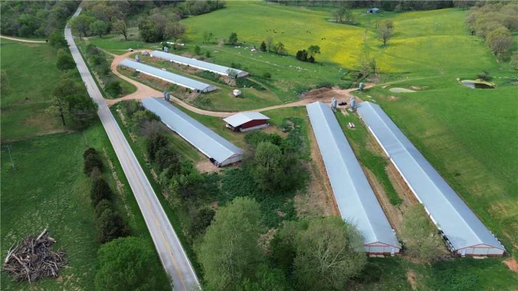 This 5-house poultry farm on 14 acres has an active Tyson contract, income producing and is ready for its next owner. All 5 houses have new heaters, several new fans, and all new exhaust fans. Houses 1 and 2 have newer feed lines. The property includes 3 wells with new pressure tanks, a concrete water holding tank, and a 40x60 stacking shed with compost boxes. Each house has its own owned 1,000-gallon propane tank. The 2 bed, 2 bath, 1,724 sq ft residential home on the property is an added bonus for you or hired help. (Home is being sold 'AS-IS) A solid operation ?don't let this one pass you by!