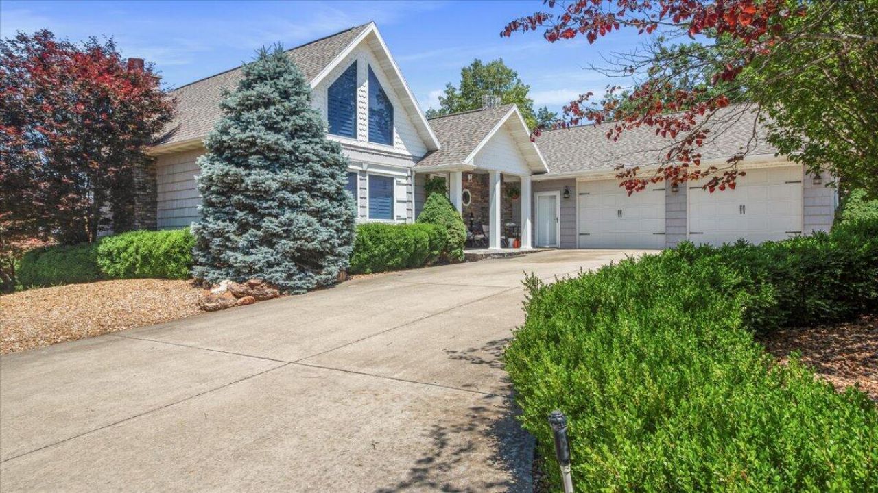 It is evident no corners were cut, or expense was spared from the moment you enter this stunning country lake estate. Starting with the circular concrete driveway of this elegant custom-built 3 BR, 3-1/2 BA, home. Beautifully adorned with luscious colorful landscaping on 3 acres M/L bordering the US Army CORPS. Large stones are placed throughout the property as borders and retaining walls which also help define various sitting areas throughout the property. Of course, the lake view is spectacular inside and outside and just wait until you witness one of the inspirational sunsets! When you enter the front door, you are greeted with quality workmanship and materials throughout the home. The large LR/DR combo has a magnificent gas insert fireplace, open-site views to the kitchen and everything overlooks the quiet, clean, clear waters of beautiful Bull Shoals Lake. While you are in the kitchen, be sure to grab a glass of water and some ice cubes that are crystal clear (really crystal clear!) due to the reverse osmosis system and water filtration system. There is one bedroom with a full bath on this level which also opens onto the Sunroom, and you have your choice of the upper deck area or stairs to the lower level. The upstairs laundry is right down the hall along with another bath. The attached heated & cooled 1000 sq. ft. garage is also convenient for carrying groceries or packages and has a great workshop. Plus, it has sinks, cabinets, and houses freezers/refrigerators and it has served as additional storage for the sellers.As we travel to the lower level, the quality continues to resonate with every step taken. Another inviting living area is in the finished basement, complete with two full BA, kitchenette, large full bathroom, stunning bedroom with another stone gas fireplace with a large picture window for lake view enjoyment. Around the corner is another full bath and non-conforming bedroom, it is currently being utilized as an office. There is a full laundry area at this level and a safe room. The lower Sunroom, currently used as an exercise workout room, leads to a patio and starts a whole new adventure of exploring.In the equipment room, you will discover that this spectacular country retreat has geothermal heating with cooling for the upper sunroom and lower exercise room provided by 2-heat pumps, state of the art whole home security system with 9 cameras that are accessible by phone, reverse osmosis water filtration system installed in 2025 and so much more!There is a 16x16 shed currently used as a garden shed for tools and lawn care equipment. The 20x20 shop has electricity, is heated & cooled, 220v electric, and boasts of an eight foot covered porch. Seller owned 500-gallon LP propane tank and Cummings whole house generator with transfer switch provide seamless electrical operation in the event of an outage.The landscaping is breathtaking and well planned out with staggered blooms throughout the year. Off to the side of the home there i