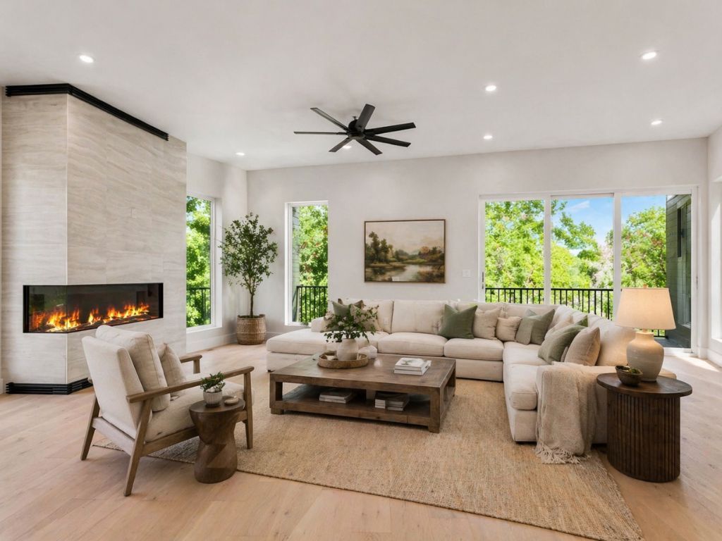Modern architecture meets natural serenity minutes from Prairie Creek Marina on Beaver Lake and downtown Rogers. This striking three-story home impresses from the moment you enter with a dramatic floating staircase spanning all levels and serving as the architectural centerpiece. Floor-to-ceiling windows flood the home with natural light and bring the wooded surroundings in. The main level features a chef's kitchen with large entertaining bar open to the dining and living areas. Upstairs offers a luxurious primary suite with spa-like bath and soaking tub, plus a second ensuite bedroom and flex space with balcony access. The walkout lower level includes 2 bedrooms, 2 baths, a second living area, and large storage with additional unfinished space ideal for a wine cellar, gym, or workshop. Every level opens to a private balcony with peaceful tree views and exceptional privacy. Rare modern luxury built by Key Concepts. Learn more at www.yourkeyconcepts.com