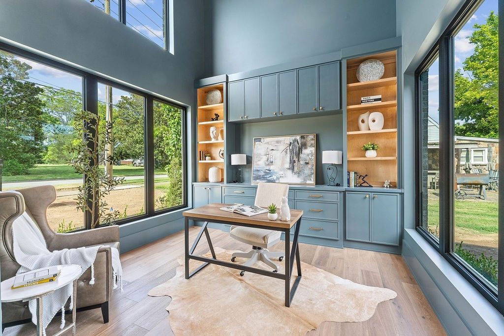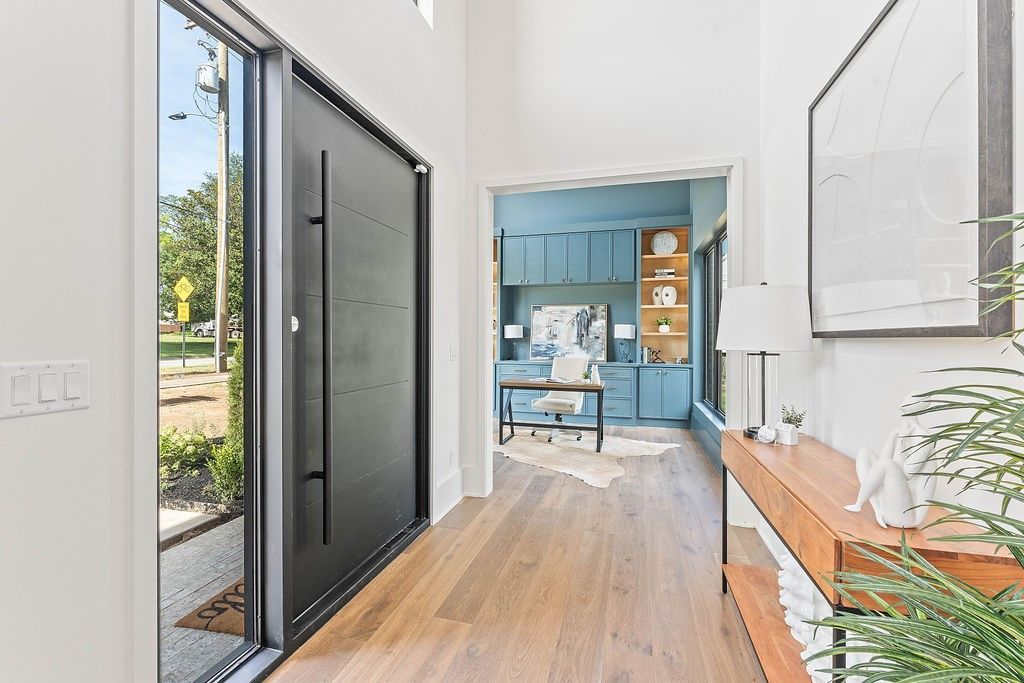 Modern Architecture. Downtown Prestige. Private Luxury. Stunning new construction in the heart of downtown Bentonville, offering modern luxury and exceptional versatility. Designed for effortless living and entertaining, this home features soaring 20-foot ceilings, light filled open spaces, and high end finishes throughout. The gourmet kitchen showcases custom rift sawn oak cabinetry, premium appliances, wine and beverage refrigeration, ice maker, and walk-in pantry. Flexible floor plan includes a private executive office, additional entertaining or lounge space, spacious bedrooms with walk-in closets, and a detached garage apartment with separate entrance ideal for guests, next gen living, or short-term rental potential. Expansive yard with room for a pool and outdoor entertaining. Prime location near the new Walmart Home Office, Alice L. Walton School of Medicine, Crystal Bridges, dining, shopping, and trails; an exceptional opportunity to own in one of Bentonville's most sought after downtown locations.