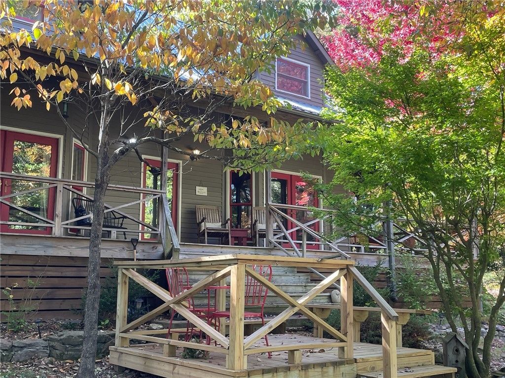 The Buffalo River Farmhouse is currently a successful nightly rental and furnishing and appliances are negotiable. With one of the premier locations in the area being only 2 miles to Kyle's Landing on the Buffalo River, 2 1/2 miles from the mountain biking trails and rock climbing area of Horseshoe Canyon, this home is perfect for anyone seeking a place that is in the middle of all the Buffalo River Wilderness area has to offer. Just a 10 minute drive to Jasper to the East and a 15 minute drive to Ponca to the West. The home is located on over 5 acres & is set back in the woods overlooking a pond with large front and back porches. The 3 large bedrooms each feel like suites. The kitchen was renovated with hickory cabinets and walnut butcher blocks that add to the rustic charm. A new dual-fuel HVAC system was installed in 2022 and new LPV floors added in 2024. The front porch is wired for a hot tub but does not have one.